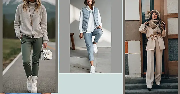 Hey there, fashion fans! Check out this super cool outfit – perfect for a women’s western winter look. Imagine strolling down a snowy mountain road (like in the pic!) wearing this cozy, chunky knit sweater. It’s all soft and comfy, like wrapping yourself in a cloud, but stylish enough to rock in the Wild West! The olive green pants are seriously on point – they’re practical and super chic, giving you that modern western vibe without looking like you raided a cowboy’s closet. And those white boots? They’re like a breath of fresh air, adding a touch of unexpected coolness that makes the whole outfit pop!
