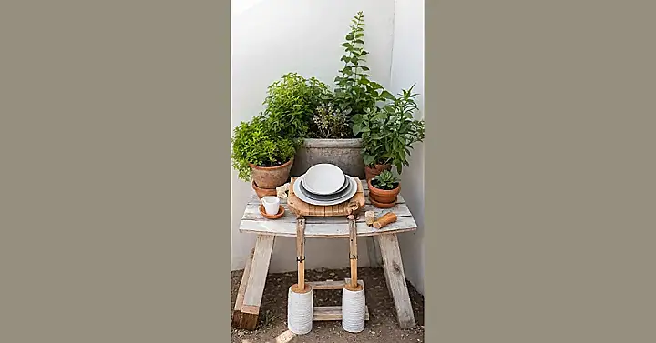 Who needs fancy furniture when your garden can be a canvas for epic crafts? We whipped up this cool, rustic table, and let’s just say it’s got personality – especially those snazzy white legs that look like they’re ready for a fashion show. Our plants, who are usually just busy soaking up sun, seem genuinely impressed. We heard the basil plant whisper to the succulent, “Did you see those plates? Someone’s clearly ready for a gourmet garden party!” It’s a prime example of turning everyday bits and pieces into something awesome, proving that garden crafts aren’t just for gnomes and grandmas; they’re for anyone who wants to add a dash of DIY magic to their green space.