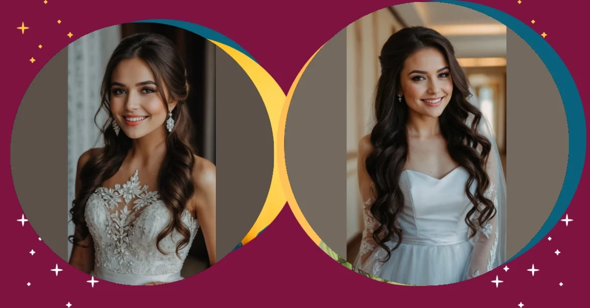 Imagine walking down the aisle with a beautiful veil trailing behind you, perfectly complementing your half-up hairstyle. Ooh la la! The blend of elegance and romance is simply irresistible. And if you add some flowers into the mix? Well, now you’ve got a slice of bridal perfection! It’s the ultimate way to let your hair down (literally) while still embracing your inner princess.