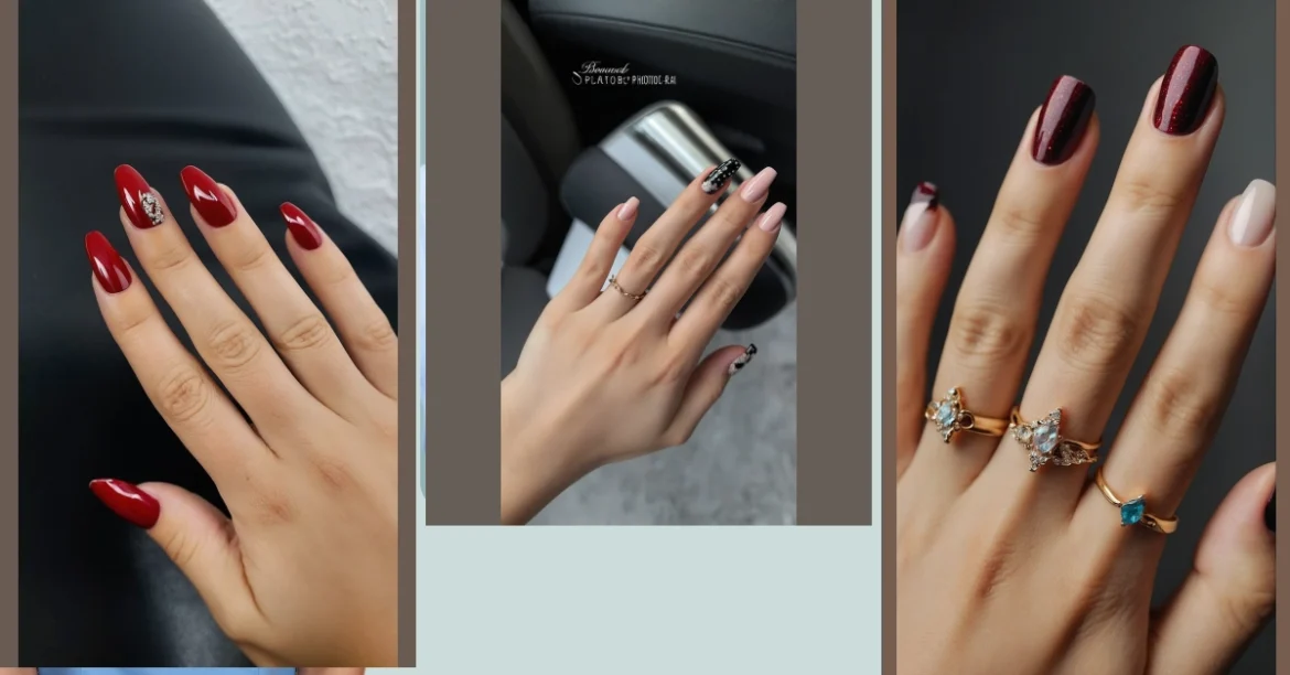 These nails are so chic and stylish, and they’re perfect for showing off your unique personality. They’re also super easy to recreate, so you can try them out yourself. Just pick up some burgundy nail polish and some black rhinestones at your local drugstore and get creative! Don’t be afraid to experiment with different shapes and sizes. There’s no wrong way to do it! Just make sure to show off your awesome nail art to everyone!
