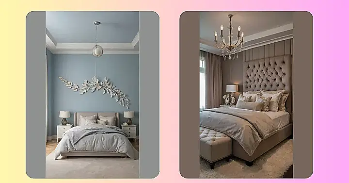 And can we talk about that chandelier? It’s like a bunch of fancy alien jellyfish decided to throw a party on the ceiling. Seriously, it looks so extra, but in a good way! It just shows you how much you can play with lighting and textures to make even a simple bedroom feel like something out of a magazine. If my bedroom looked like this, I’d probably never leave!