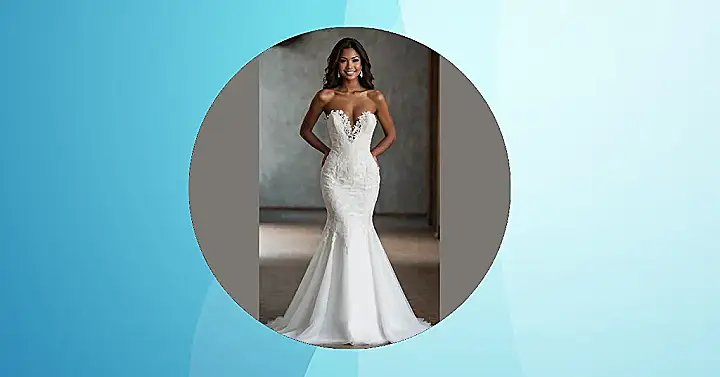 While this stunning dress might not hug every curve like a classic mermaid silhouette, it still makes you feel like you could spontaneously burst into an Ariel song in the middle of your vows – minus the scales, obviously! The flowing skirt just begs for a dramatic slow-motion walk or, let’s be real, super comfy dancing when the DJ plays your favorite throwback jams. It’s the kind of wedding dress that says, “I’m fabulous, I’m sparkly, and yes, I absolutely plan on eating all the appetizers without feeling constricted!”