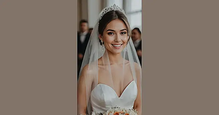 Her smile is so bright, it could power a small city! What’s truly amazing is how her elegant updo, complete with that dazzling tiara, perfectly complements her gorgeous lace gown and fresh bouquet. She’s rocking that whole ensemble like she was born for it, looking ready to walk down the aisle and maybe even float. This isn’t just a wedding look; it’s a “mic drop” moment for anyone who thought bridal glamour couldn’t be this effortlessly stunning and happy all at once!