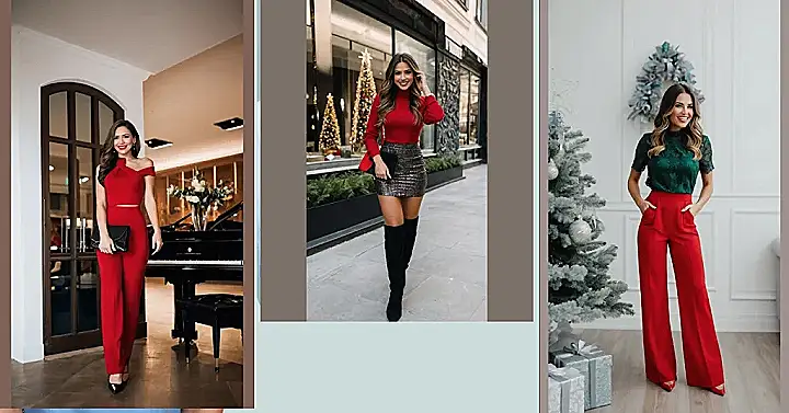 Forget reindeer sweaters, this Christmas outfit is way more stylish! Check out this super chic look: a crisp white blouse paired with bold red pants. It’s like a Christmas card come to life, but way less cheesy and way more you. It’s festive enough for Christmas Eve dinner with the fam, but also sophisticated enough to rock at a holiday party. Who needs mistletoe when you’ve got this killer combo?
