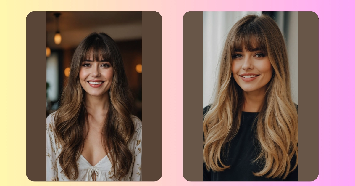 Looking at this picture, you can almost hear the compliments rolling in! Her long, wavy hair is super dreamy, but let’s be real, those bangs are doing some heavy lifting. They’re not just hanging there; they’re like the VIP section for her super bright smile, perfectly framing her face and making her eyes sparkle. This kind of soft, face-framing magic is exactly why curtain bangs are still having their moment – they give you that effortlessly chic look without making you feel like your hair is trying to take over your whole face.
