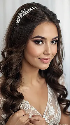 Seriously, this whole vibe screams ‘glam bridal hair’ in the best way possible. The way the hair is styled back shows off that stunning sparkly piece and those amazing dangling earrings. It’s not just hair; it’s an entire statement that says, “Yep, I’m ready to feel like a million bucks!” Putting all this together makes you feel like you could float down an aisle or just walk into school on Monday feeling like the most fabulous person there. It’s the ultimate sparkle and style combo!