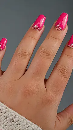 These nails are serving up some serious rose pink realness! It’s like Barbie decided to become a manicurist, and honestly, we’re here for it. The bright pink is so fun and cheerful, it’s guaranteed to make even Mondays feel a little less…Monday-ish. Plus, those tiny silver decorations are the perfect touch of fancy without being too over-the-top.