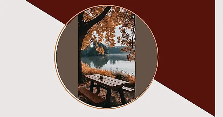 This picture is giving me major “cozy fall vibes.” Imagine you’re sitting at that picnic table, with the crisp autumn air blowing through your hair. You can almost smell the leaves crunching under your feet and taste that hot, steamy cup of coffee in your hand. It’s the perfect place to relax and watch the world go by, especially when you’re surrounded by the warm, golden hues of fall!