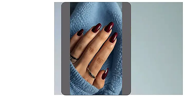 These nails are seriously giving us major “I woke up like this” vibes! That rich burgundy is totally on-point, and the shiny finish is like, “Look at me, I’m fabulous!” It’s the perfect touch for anyone who wants to add a little bit of drama and sophistication to their look, without having to go all out with crazy designs. It’s like a red carpet moment, but for your fingertips!