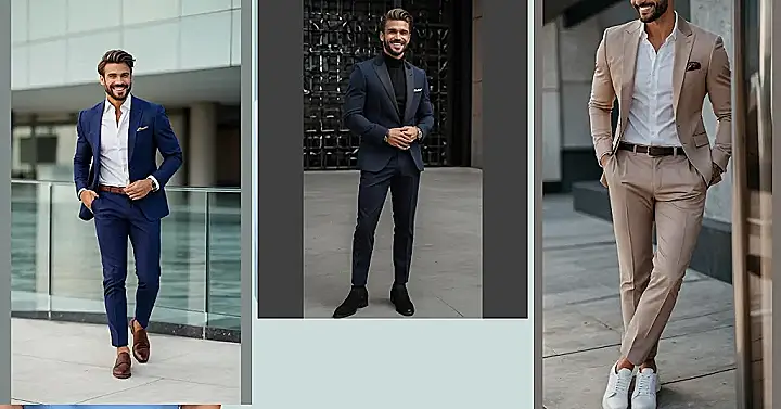 This guy looks like he’s ready to take on the world! He’s got a sharp navy suit and a slick black turtleneck that’s so fancy, it makes even a plain black shirt look boring. His shoes are perfect for stepping out in style, and he’s rocking a watch that screams “I’m a grown-up.” This outfit is the epitome of “men’s formal outfits.”