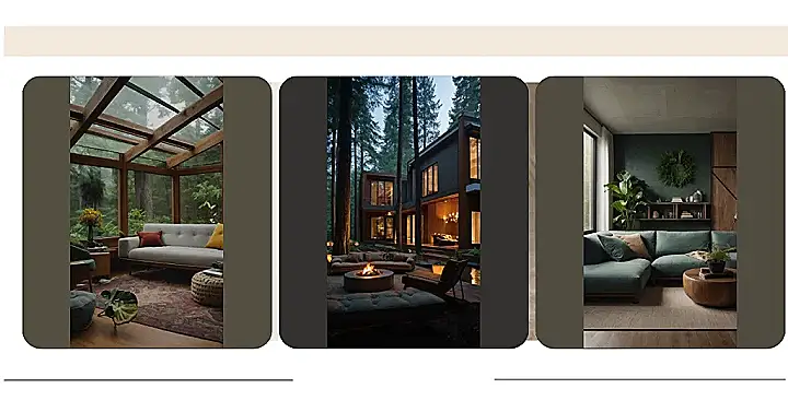 The best part about this room is that it blends nature and modern living seamlessly. You can feel the connection to the outdoors, even while relaxing inside. It’s like having your own personal forest oasis, where you can escape the hustle and bustle of everyday life and reconnect with nature. It’s the perfect place to unwind and recharge.
