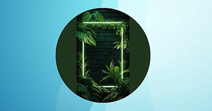 This picture is like a secret garden that only glows in the dark! It’s got all these cool green plants and a super bright neon frame that makes it look like a mystical portal to another world. It’s totally the kind of thing you’d see in a sci-fi movie, but it’s also totally chill and relaxing, too. Just imagine being able to step inside and explore, surrounded by all those lush leaves.