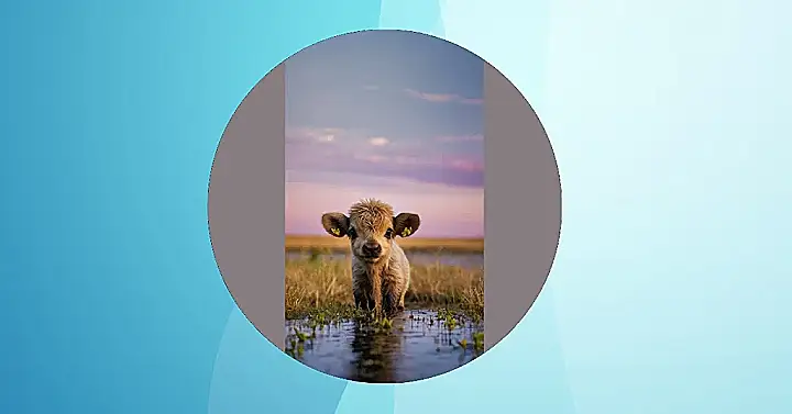 This little calf is the definition of adorable! Just look at those big, curious eyes and fluffy fur! You’d think this little guy was posing for a photoshoot, but he’s just out exploring the world around him. The way he stands there, looking straight at the camera, makes you want to give him a big hug. He’s a little muddy from his adventures, but that just adds to his charm. Maybe he’s looking for a snack or maybe he’s just enjoying the beautiful sunset. Whatever it is, this little guy is definitely a star!
