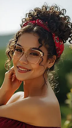 This photo is all about rocking those curls! It’s like she just rolled out of bed and decided to look amazing. But seriously, her hair is so cute and effortless. She’s got this whole “I don’t care, but I actually do” vibe going on. And that red bandana? It’s like the cherry on top of a perfect sundae. With a look like this, who needs a fancy salon? She’s got all the confidence and style anyone could ask for!