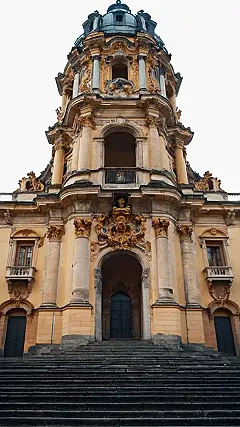 Imagine a building that’s like a giant, fancy birthday cake! That’s what Baroque architecture is all about – lots of curves, details, and decorations that make it look super extravagant. This church is a perfect example, with its curvy dome, elaborate sculptures, and gold accents that sparkle like a million tiny stars. It’s like someone took all the most beautiful things and put them together to create this architectural masterpiece.