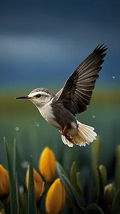 This little bird is seriously rocking the whole “cute animal wallpaper” vibe, don’t you think? Look at those tiny feet, those big eyes, and those feathery wings that look like they could carry it to the moon! It’s like a tiny, winged superhero soaring through the sky. You can almost hear it saying, “I’m a bird, I’m free, I’m gonna fly to the tulips and steal all the pollen!”