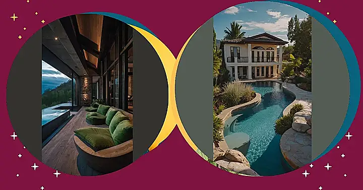 This house is so fancy, it probably has a butler who brings you ice cream while you’re floating in the pool! Imagine being able to just chill on that comfy-looking lounge chair and soak up the warm evening air. It’s like a scene straight out of a movie!