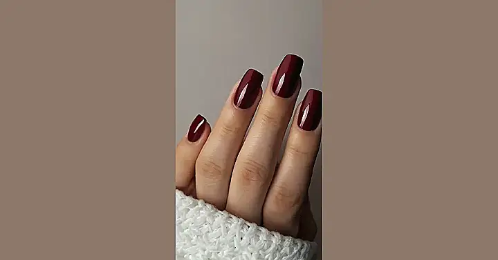 These nails are seriously giving us major “I woke up like this” vibes! That rich burgundy is totally on-point, and the shiny finish is like, “Look at me, I’m fabulous!” It’s the perfect touch for anyone who wants to add a little bit of drama and sophistication to their look, without having to go all out with crazy designs. It’s like a red carpet moment, but for your fingertips!