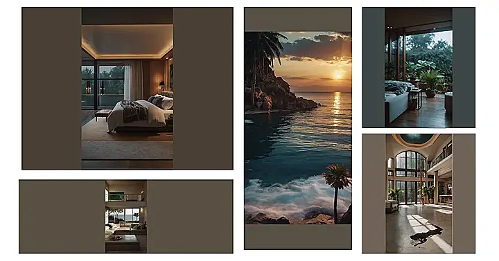 Imagine waking up to this view! This picture shows a bedroom with a giant window looking out over the ocean. The sun is setting, casting a warm glow over everything, and the waves crashing against the shore. It’s the kind of scene that makes you want to just stay in bed all day and watch the world go by. But don’t worry, if you get bored of staring at the sunset, you can always cozy up in that big fluffy bed. It looks incredibly comfy. Maybe you can paint the room a calming mint green to match the ocean view – just imagine how relaxing that would be!