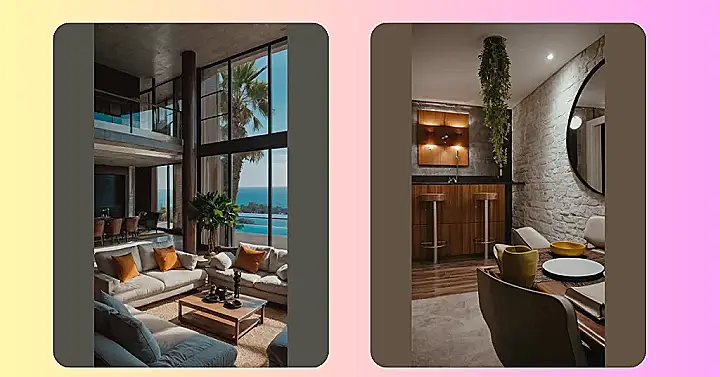 This living room is the epitome of “less is more.” It’s like a cozy cave, with soft lighting and comfy furniture, but without all the clutter. The walls are practically begging you to relax and forget about your worries. Plus, that rug? It’s like a giant piece of art, and those pillows just add a touch of personality without being too much. It’s the kind of space where you can truly unwind and just “be.”
