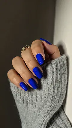 These nails are so blue, they’re practically ocean-themed! Maybe this person is heading to the beach or dreaming of a tropical vacation. But with that sparkly ring, it looks like they might be getting ready for something even more exciting! I wonder if they’re about to say “yes” to their forever person? It’s a secret they’re keeping under wraps, but those nails are definitely a hint that something big is coming.