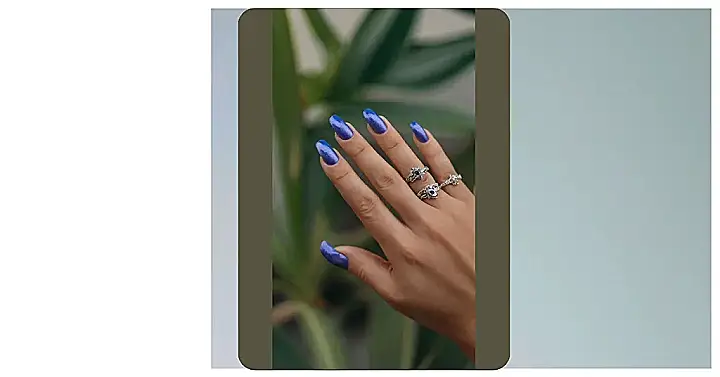 This hand is rocking the blue nail look! The bright blue nails are a total pop of color, and they look amazing with the sparkly rings. It’s like the nails are saying, “Hey, look at me!” And the rings are like, “Yeah, we know, we’re pretty awesome too!” It’s a match made in fashion heaven, and it’s giving us major summer vibes.