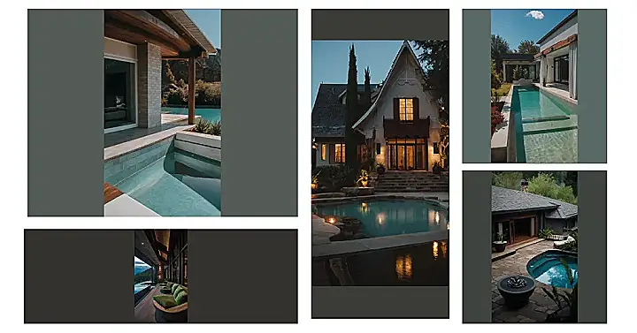 This house is so fancy, it probably has a butler who brings you ice cream while you’re floating in the pool! Imagine being able to just chill on that comfy-looking lounge chair and soak up the warm evening air. It’s like a scene straight out of a movie!
