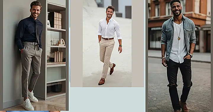 This guy is rocking a classic men’s clothing style! Think clean lines, a crisp button-down shirt, and sleek gray pants. He’s giving off serious “I’ve got this” vibes, ready to take on the world. It’s a look that’s timeless and never goes out of fashion.