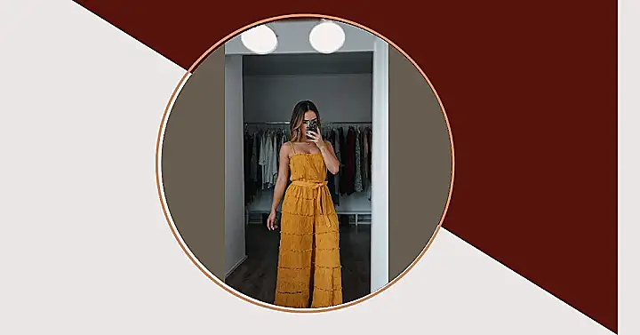 This outfit is a total mood booster! It’s like the lady in the picture is saying “I’m feeling confident and ready to take on the world, but I’m still keeping it comfy.” The bright yellow color screams “happy vibes” and the flowy skirt looks super comfortable to wear all day long. Plus, with that cute belt, it’s a little bit dressy without being too fancy. If you’re looking for a casual outfit that’s still stylish and flattering, this is a great option!