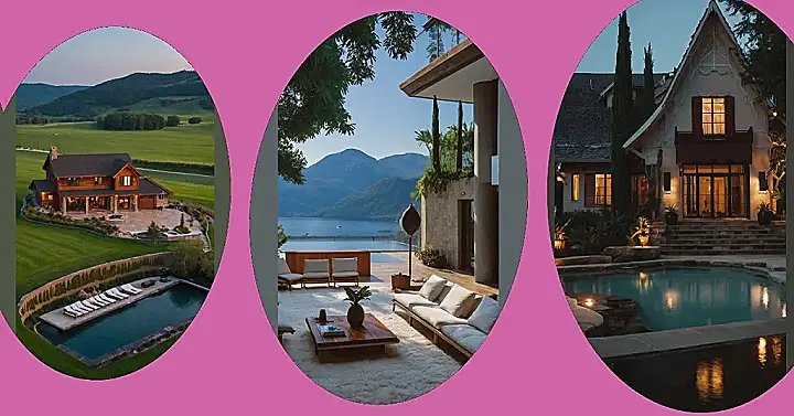 This house is so fancy, it probably has a butler who brings you ice cream while you’re floating in the pool! Imagine being able to just chill on that comfy-looking lounge chair and soak up the warm evening air. It’s like a scene straight out of a movie!