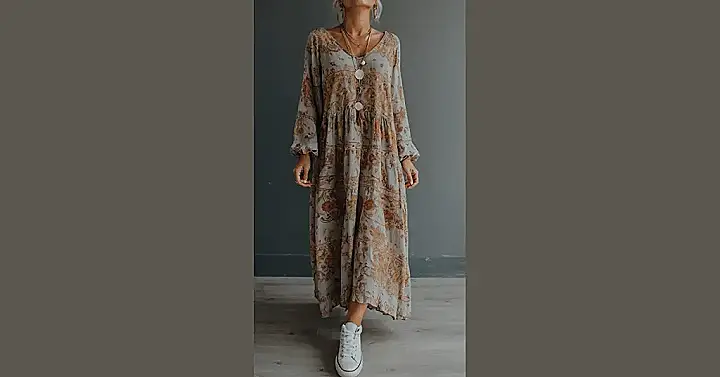 This outfit screams “fall fashion” but with a twist! The flowy floral dress is totally boho, and with those comfy white sneakers, you’re ready to rock pumpkin spice lattes and apple picking. It’s the perfect mix of cozy and cool ‚Äì who knew you could look stylish while chasing leaves in the park?