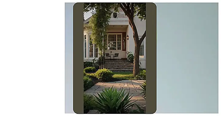 The front yard is like a fancy garden, with the cutest little bushes and a stone walkway that looks like it leads to a secret hidden treasure. If I was a squirrel, I’d totally bury nuts in that yard, it’s so inviting and safe! Honestly, this house is so awesome, it almost makes me want to trade my phone for a rocking chair and some hot chocolate. Almost. But not quite, because who could give up their phone?!