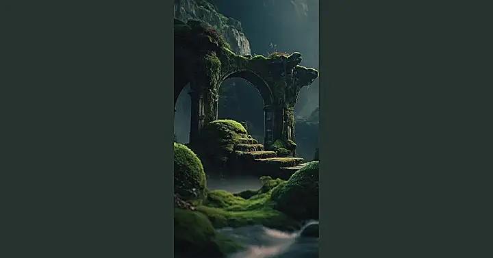 This picture is like a scene straight out of a fantasy novel! Imagine a brave adventurer stumbling upon these moss-covered ruins, hidden deep within a magical forest. Maybe it’s the entrance to a forgotten city, or maybe it’s just a really old, overgrown shed that got lost in the woods. Either way, it looks mysterious and exciting! It’s like the forest is reclaiming the ruins, making them a part of itself. It’s like the trees are whispering secrets to the stones, telling stories of a time long ago.