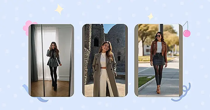 Imagine you’re trying on outfits in front of a mirror, just like she is. Wouldn’t it be cool to feel confident and stylish in your clothes? Maybe you can experiment with some fun fall colors or textures like this girl. You can even add a touch of your personality with a cool hat or some jewelry. With a little effort, you can look just as amazing!