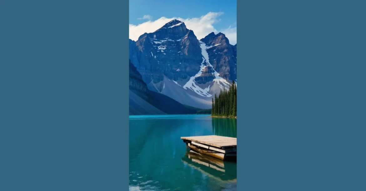 Just imagine, you’re strolling through a Canadian park, and suddenly you see this breathtaking view. A giant mountain with snow on its head, a sparkling lake that’s so blue it looks like it’s been painted, and a cute little dock just waiting for someone to take a dip. It’s like a picture from a fairytale, except this one’s totally real! The air is fresh and clean, and you can feel the mountains watching you. You might even see some wildlife, like a friendly moose or a sneaky squirrel.