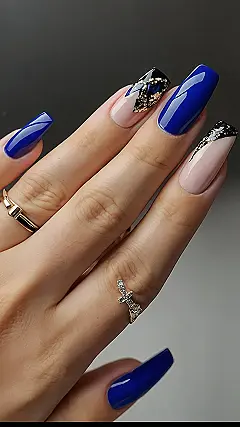 This nail art design is like a party on your fingertips! It’s got the classic combination of blue and gold, but with a little extra sparkle and shine. It’s perfect for a night out with friends, a fancy dinner, or even just a day at the mall when you want to feel extra fabulous.