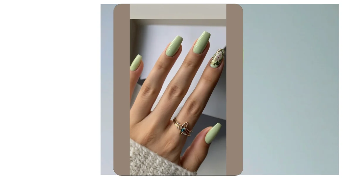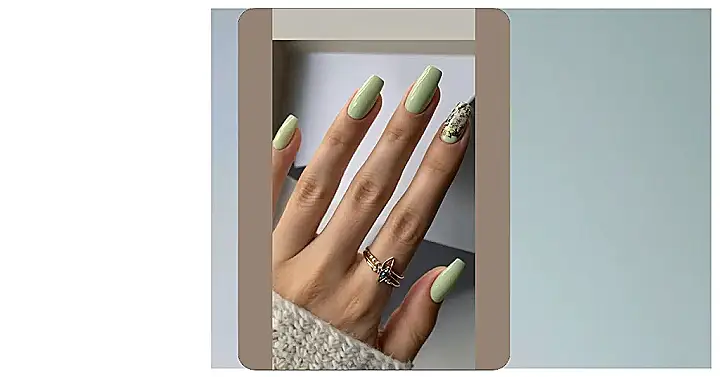 These nails are like a walk in the park! The light green color reminds you of fresh grass and blooming flowers, perfect for spring. They’re so pretty and simple that you can wear them every day, and they‚Äôll always make your hands look amazing. Plus, that sparkly ring with a green gem is like a little piece of nature on your finger ‚Äì total boss move!