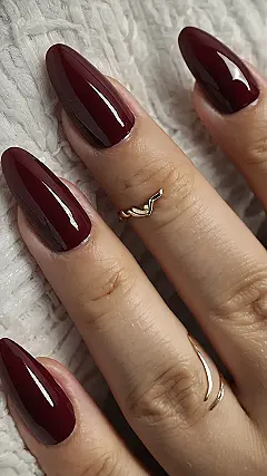 Those nails are so long and pointy, they look like little red daggers! It’s like they’re ready to slay the fall fashion game. That deep red color is perfect for cozy sweaters and pumpkin spice lattes. It’s like a little reminder that fall is the best season for all things spooky and stylish.