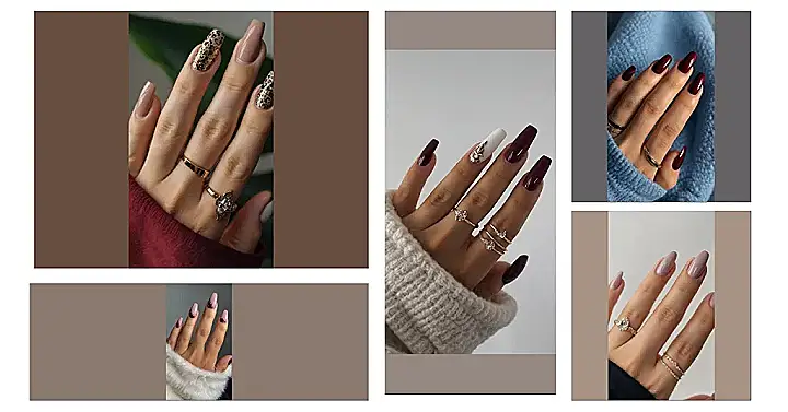 These nails are so chic, they’re practically screaming “Look at me!” They’ve got that fancy, grown-up vibe with the deep burgundy and gold accents, but they’re also fun and playful with the way the colors are mixed and matched. I’m picturing these nails with a sparkly outfit and some killer confidence – you know, the kind of confidence that makes you feel like you can conquer anything.