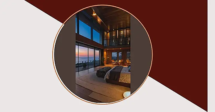 Imagine waking up in this room, with the sun pouring in through those huge windows! It’s like having your own private sunrise show every morning. The wooden walls and ceiling give the room a cozy, cabin vibe, but the sleek bed and modern furniture make it feel super fancy. It’s the perfect place to curl up with a good book and forget about all your worries.