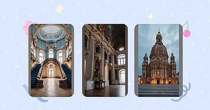 The best part? All that swirling gold and fancy art on the ceiling? Yeah, that’s not just for show. It’s like a secret code telling you that Baroque architecture loves to be super dramatic and over-the-top. It’s basically the opposite of minimalist, like a flamboyant fashion show for buildings! So next time you see something super fancy and ornate, you can say, “Ah, that’s Baroque architecture!” and sound like a total expert.