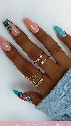 The floral nail art is the perfect touch of whimsy. It’s like the flowers are saying, “We’re beautiful, we’re free, and we’re here to stay.” And the hand is like, “I’m with them.” This nail design is perfect for anyone who wants to make a statement and show off their unique style. It’s the perfect mix of funky and feminine, and we’re totally digging it!
