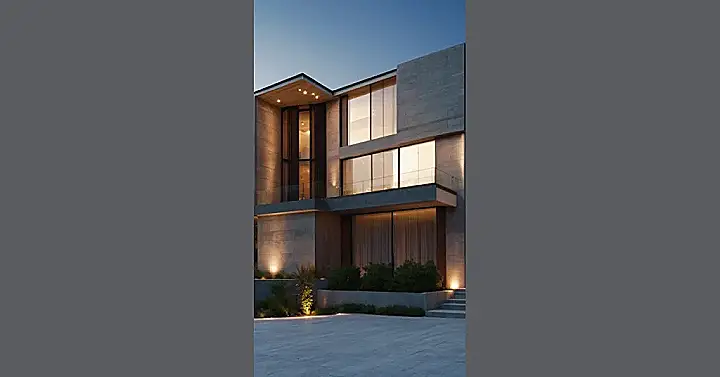 And what’s that? Is that a little garden bed hiding behind the cool, smooth patio? It’s like a secret garden! I bet it smells amazing in there, and it makes the whole place feel super cozy and connected to nature, even though you could probably get lost in those huge windows. This place is so stylish, you’d almost forget you’re looking at a house and not a magazine photo!