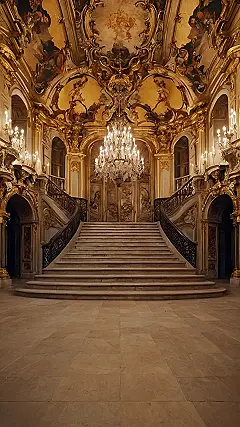 Imagine walking into this grand hallway! It’s like stepping into a storybook, except in this story, the main character is a chandelier with a seriously fancy personality. This grand staircase with its fancy curves and swirly decorations is what we call Baroque architecture. It’s all about drama, a lot of gold, and feeling like you’re in a royal palace (even if you’re just a regular ol’ grade 9 student).