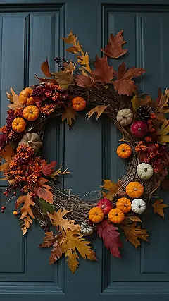 And speaking of Thanksgiving decor, this wreath is totally rocking the fall vibes. Those leaves are like a rainbow of fall colors, from golden yellow to fiery red. The little pumpkins are super cute and festive, and they make you want to grab some pumpkin pie and snuggle up by the fireplace. This wreath is the perfect way to welcome all the good food and good times of the season!