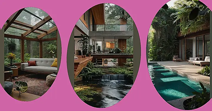 Imagine waking up in a house where the walls are covered in plants and the air smells like fresh leaves. This isn’t a jungle, it’s a house designed to be one with nature! It’s like living in a giant, comfy treehouse with a super cool pool. You can hang out by the water, take a dip, or just chill on the comfy chairs and soak up the sunshine. This house is the perfect place to relax and forget about all your worries.