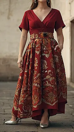 This dress is like a beautiful garden in bloom, with its vibrant red color and intricate floral design. It’s a reminder that you can rock any style, no matter your size! The flowing skirt is so comfy, it’s like walking on a cloud. Imagine feeling like a queen in this dress!