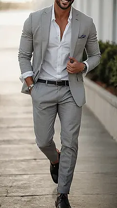 Think about it. Suits can be pretty boring sometimes, especially when they’re all dark and stiff. But this guy’s rocking a light grey suit that gives him a clean, modern look. And the way his shirt’s open a little? It’s like he’s saying “I’m confident and I don’t care if you know it!” Maybe that’s just me though… Anyway, the point is, this guy is showing us that suits can be cool and stylish too! Maybe you can try to copy his look the next time you have a special occasion. Just don’t forget the confidence part!