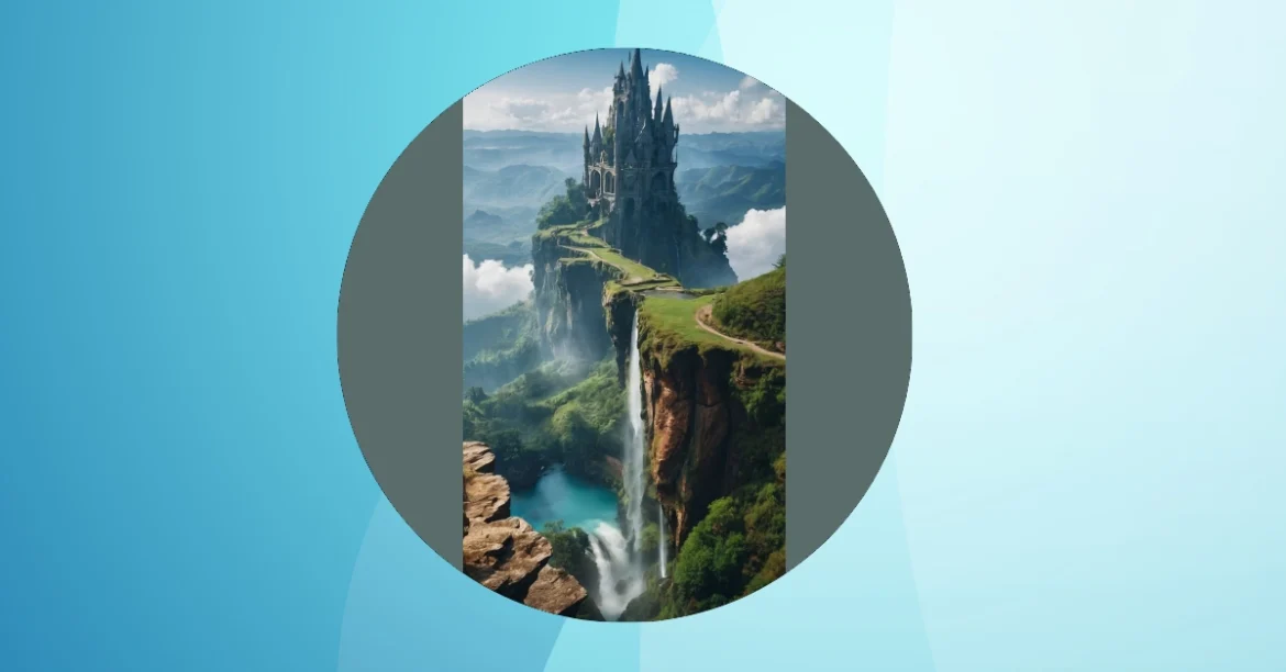 This picture is like something out of a dream! It’s a majestic castle perched high on a cliff, looking like it’s floating among the clouds. Imagine living in a place like this, with the misty mountains in the distance and a waterfall cascading down right beside your home. You could easily spend your days exploring the winding pathways, searching for hidden treasures, or maybe even a secret dragon lair (just kidding… or am I?).