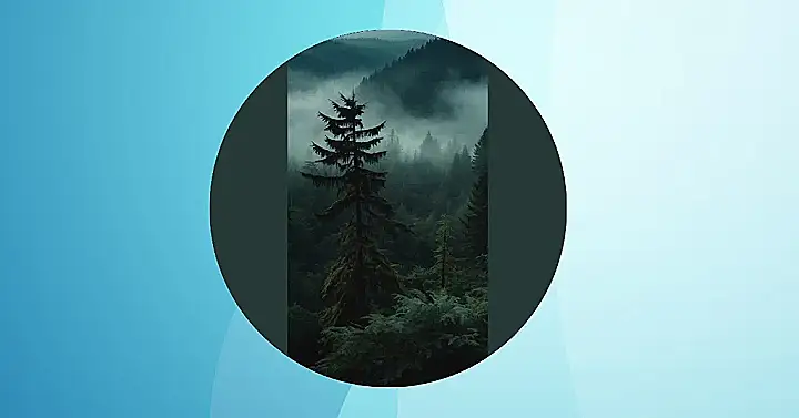 This photo is like stepping into a fairytale! Imagine yourself walking through the tall, dark trees with the morning mist swirling around you. It looks kind of spooky, but also peaceful and beautiful. The sun is trying to peek through the trees, but it’s like the forest is trying to hide its secrets. You just know there are magical creatures lurking around every corner. Maybe a friendly gnome or a mischievous pixie is watching you!